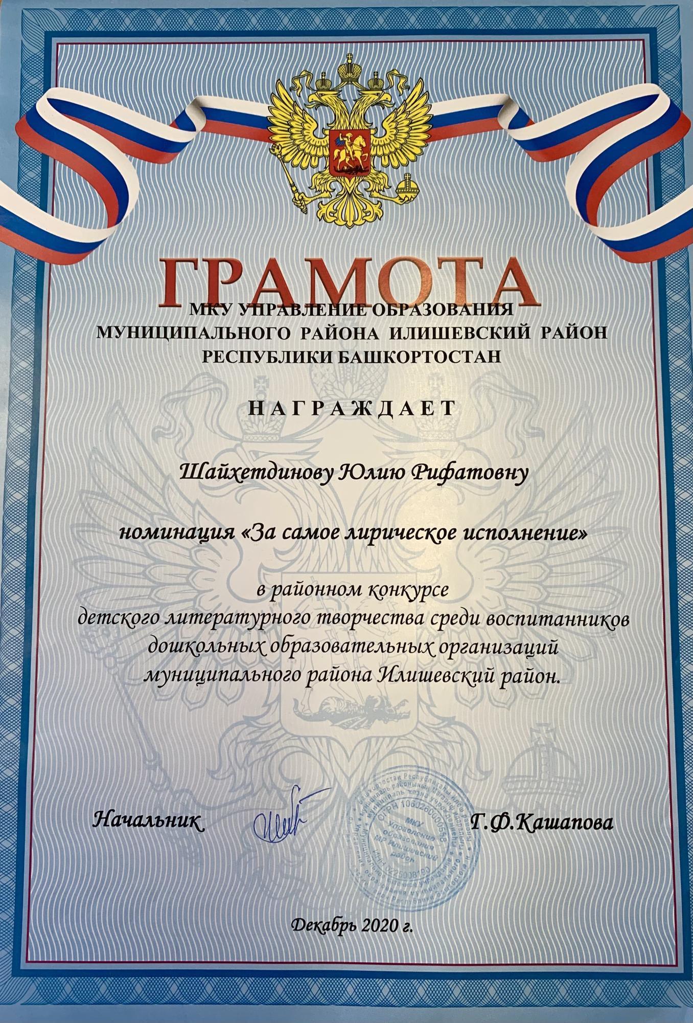 Районный конкурс детского литературного творчества среди воспитанников ДОУ Номинация "Самое лирическое исполнение"