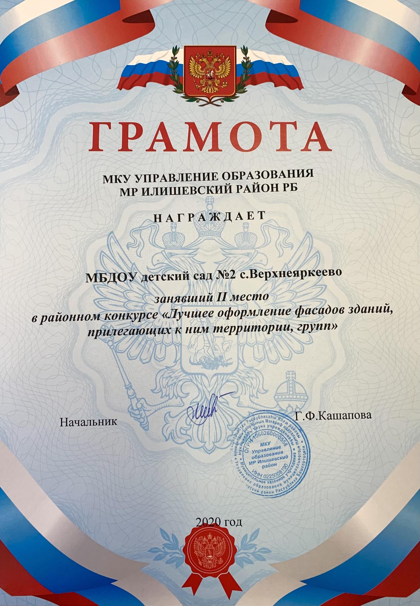 Районный конкурс "Лучшее оформление фасадов зданий,прилегающих к ним территорий, групп" 2 место