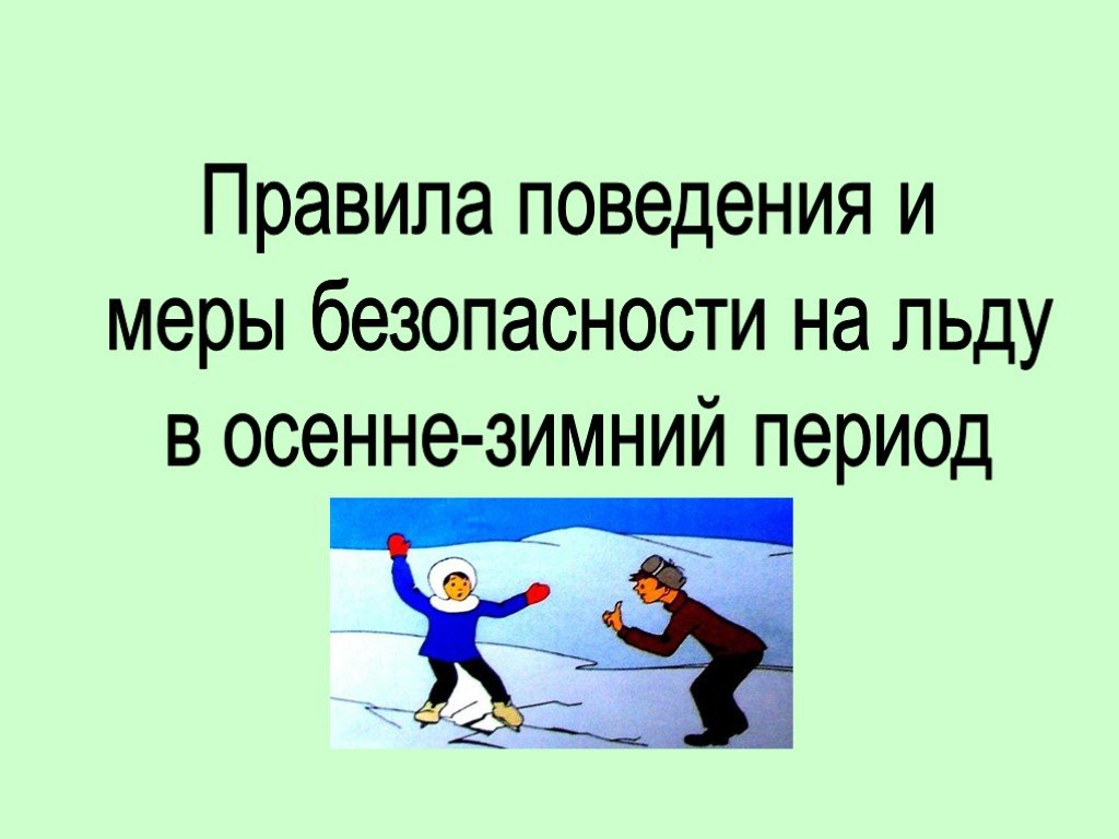С появлением первого ледяного покрова на водоёмах запрещается катание на коньках, лыжах и переход. Тонкий лёд непрочен и не выдерживает тяжести человека.