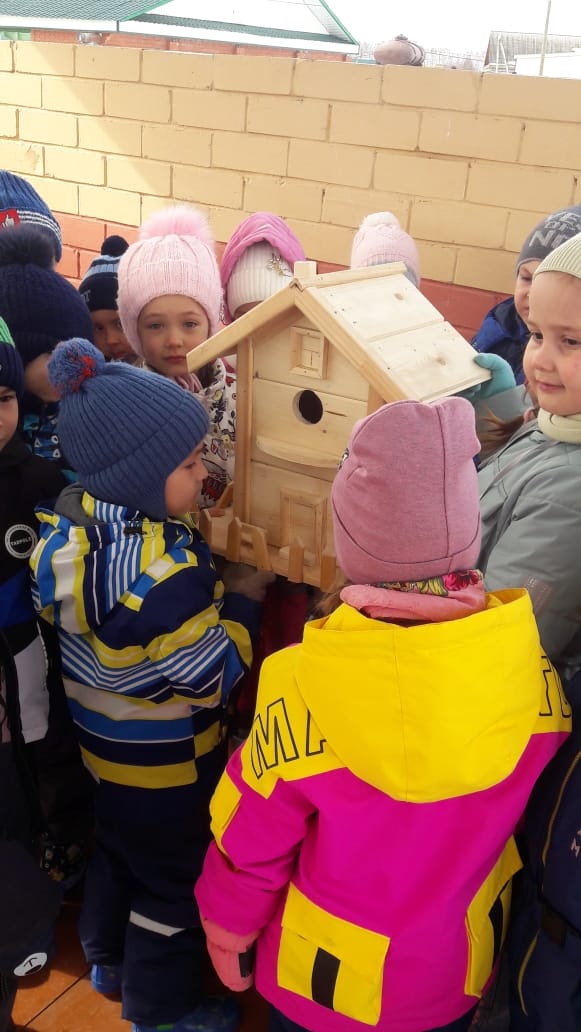 Дети с нетерпением ждут пернатых жильцов,и каждый день наблюдают за скворечником.