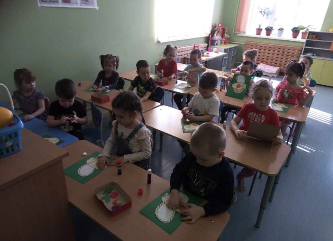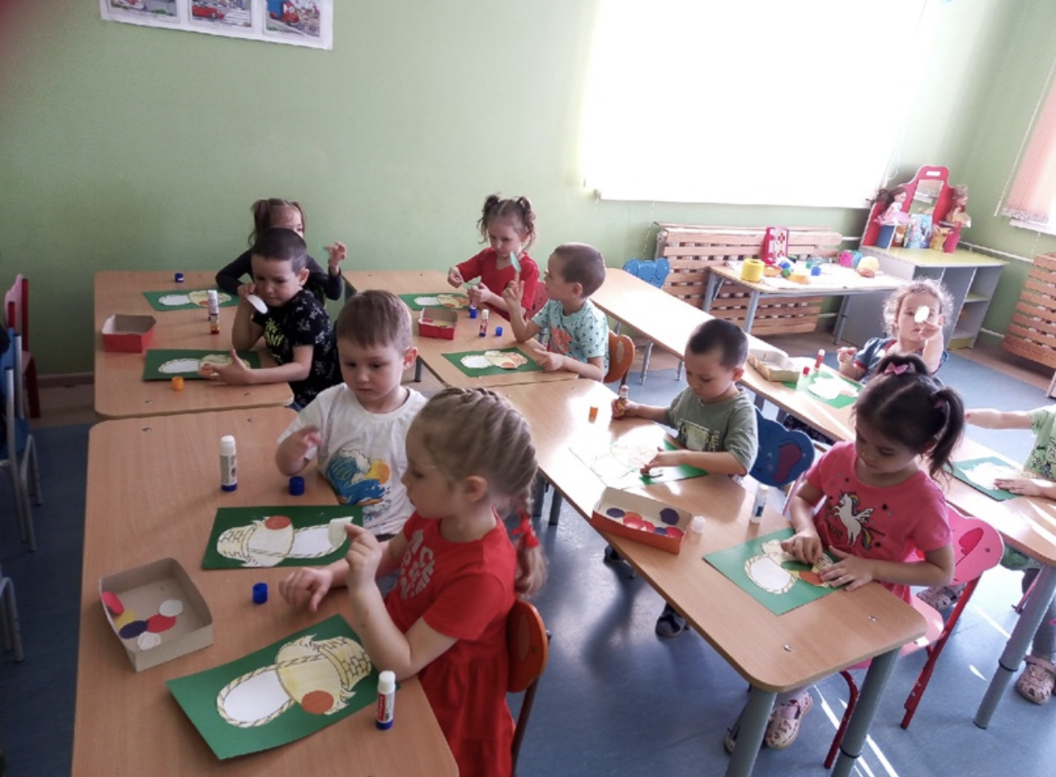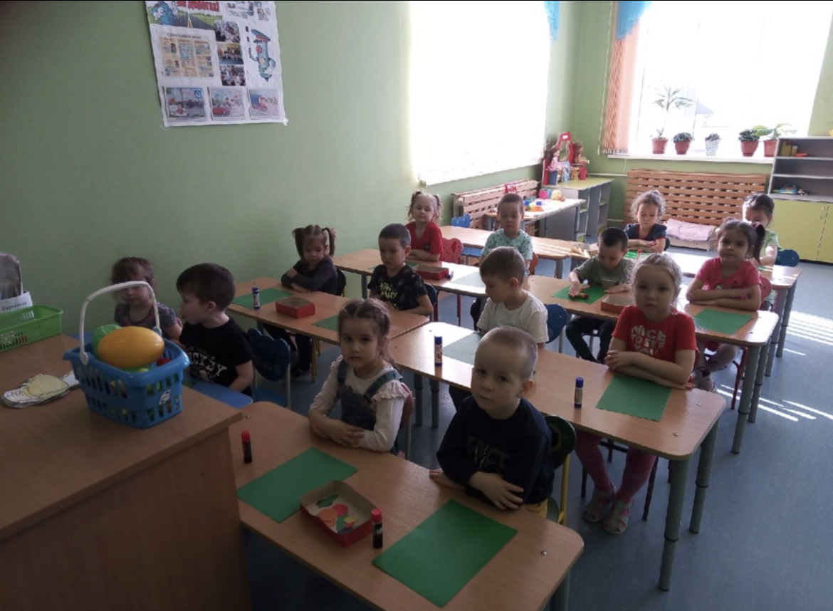 11 апреля воспитатель Резеда Фавиловна в средней группе провела занятие по аппликации на тему "Витаминная корзина".
