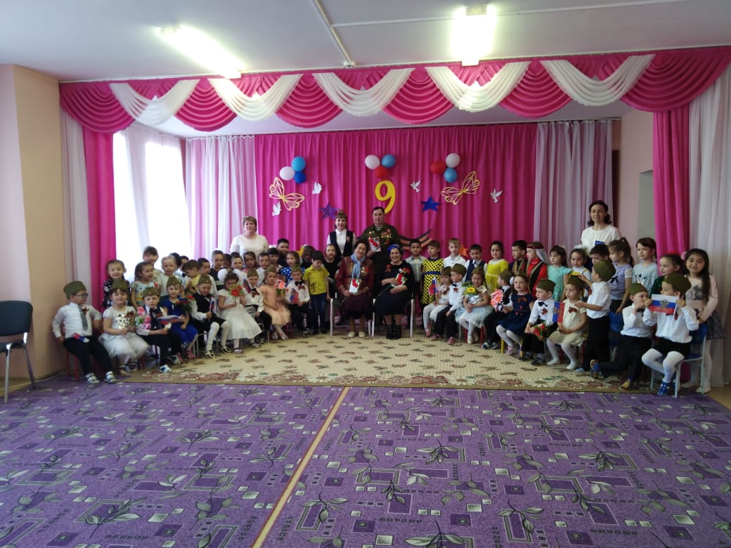 Итогом празднования великого дня победы стал утренник - «Никто не забыт, ничто не забыто», который прошел 7 мая 2019 года. Были приглашены труженики тыла и ветераны труда Мингазова Фана Анваровна, Кабирова Рузиля Габдулиновна и ветеран Афганской войны Каримов Ильдар Магсумович. Дети с огромным удовольствием танцевали, рассказывали стихи, слушали и исполняли песни военной тематики, о мире, дружбе и подарили открытки и цветы.