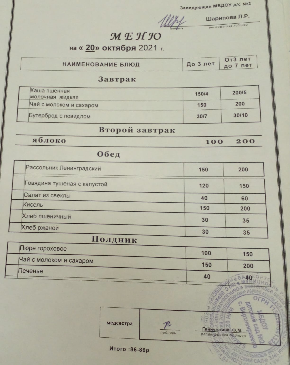 (Меню на 20.10.2021 г.)