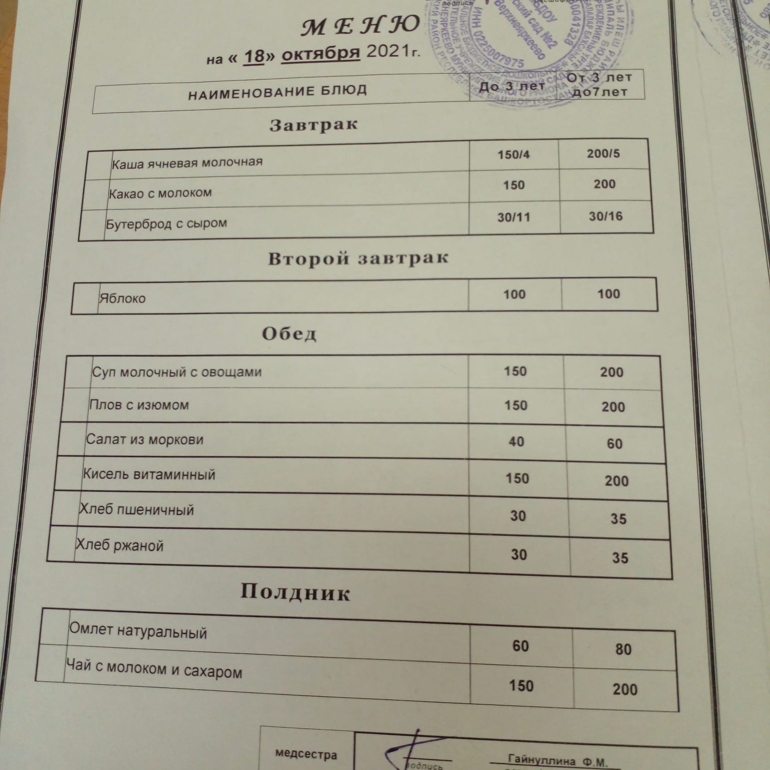 (Меню на 18.10.2021г.)